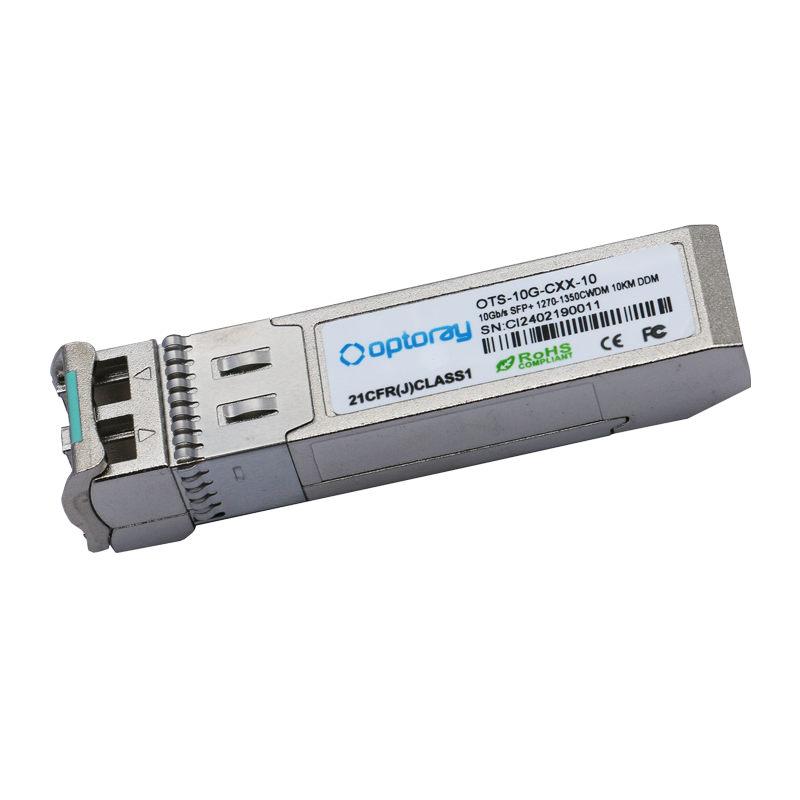 Jednomodni primopredajnik serije OTS-10GXXX je utični modul malog oblika za dvosmjerne serijske optičke podatkovne komunikacije kao što je IEEE 802.3ae 10GBASE-LR/LW. Ima SFP 20-pinski konektor koji omogućuje mogućnost uključivanja bez isključivanja. Digitalne dijagnostičke funkcije dostupne su putem I2C. Ovaj modul dizajniran je za jednomodno vlakno i radi na nominalnoj valnoj duljini CWDM valne duljine. Dostupno je šesnaest središnjih valnih duljina od 1270 nm do 1610 nm, sa svakim korakom od 20 nm. Ponuđen je zajamčeni proračun optičke veze od 11 dB. Dio odašiljača koristi CWDM DFB laser s više kvantnih jažica i laser je klase 1 u skladu s međunarodnim sigurnosnim standardom IEC-60825. Odjeljak prijamnika koristi integrirano InGaAs pretpojačalo detektora (IDP) montirano u optičkom zaglavlju i IC ograničavajućeg naknadnog pojačala. Modul primopredajnika sukladan je s Small Form-factor Pluggable Plus (SFP ) Multi-Source Agreement (SFF-8432). Poboljšano digitalno dijagnostičko sučelje za nadzor ugrađeno je u SFP primopredajnik. Na temelju SFF-8472. dostupni su monitori temperature, napona napajanja, struje prednapona lasera, prosječne izlazne snage lasera i primljene izlazne snage u stvarnom vremenu.